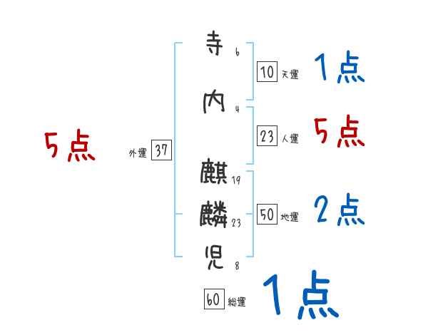 天運![]() | 寺内麒麟児さんの天運は10画の1つ星!不安を感じやすい傾向。ストレスを抱えないように注意しましょう。 家系が持つ宿命的な運勢を表します。祖先から受け継いだ苗字ですので自分の力が及びません。家柄を象徴します。 |