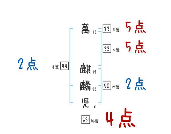 萬麒麟児さんの画数の鑑定結果