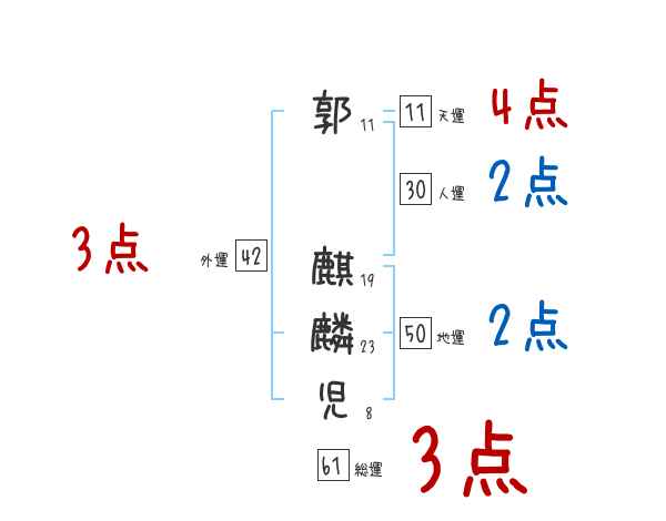 郭麒麟児さんの画数の鑑定結果