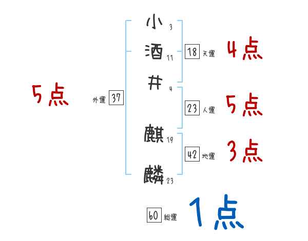小酒井麒麟さんの画数の鑑定結果