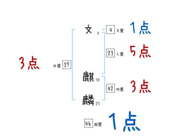 天運![]() | 文麒麟さんの天運は4画の1つ星!感情が不安定で苦労するかも。周囲との協調を心掛けましょう。 家系が持つ宿命的な運勢を表します。祖先から受け継いだ苗字ですので自分の力が及びません。家柄を象徴します。 |