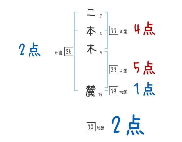 二本木麓さんの画数の鑑定結果