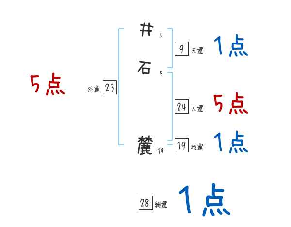 井石麓さんの画数の鑑定結果