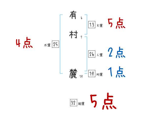 総運![]() | 有村麓さんの総運は32画の5つ星!柔軟性があり成功する。チャンスが多く金運が良い。 あなたの人生を表す1番重要な運勢です。生涯を通じて影響する総合運となり、主に50歳以降の晩年期に影響を及ぼします。 |