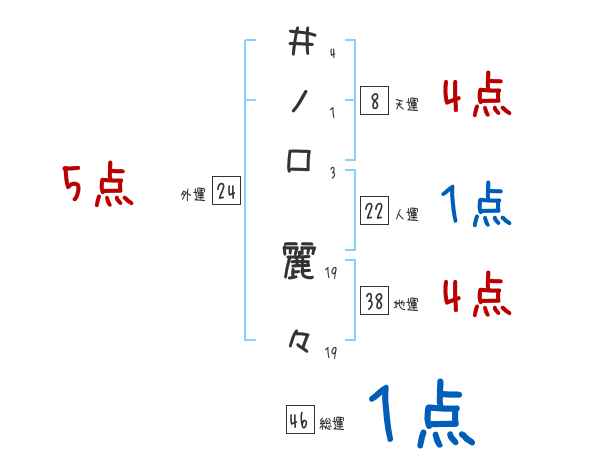 井ノ口麗々さんの画数の鑑定結果