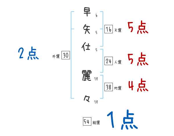 天運![]() | 早矢仕麗々さんの天運は16画の5つ星!人望が厚く大きく発展する。逆転成功が見える。 家系が持つ宿命的な運勢を表します。祖先から受け継いだ苗字ですので自分の力が及びません。家柄を象徴します。 |