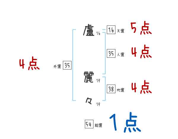 盧麗々さんの画数の鑑定結果