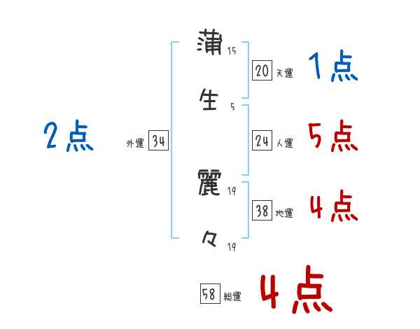 蒲生麗々さんの画数の鑑定結果