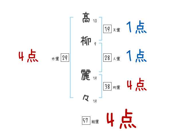 髙柳麗々さんの画数の鑑定結果