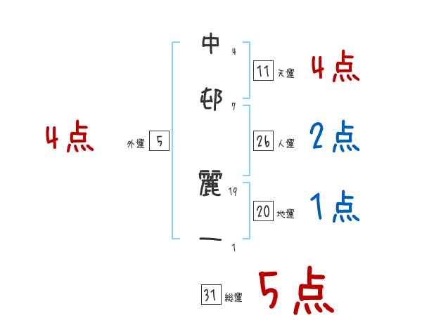 中邨麗一さんの画数の鑑定結果