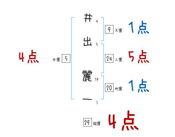 総運![]() | 井出麗一さんの総運は29画の4つ星!完全主義で才能がある。厳格な心の持ち主。 あなたの人生を表す1番重要な運勢です。生涯を通じて影響する総合運となり、主に50歳以降の晩年期に影響を及ぼします。 |