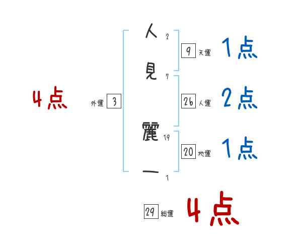 人見麗一さんの画数の鑑定結果