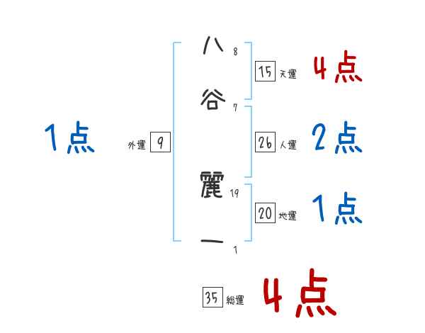 八谷麗一さんの画数の鑑定結果