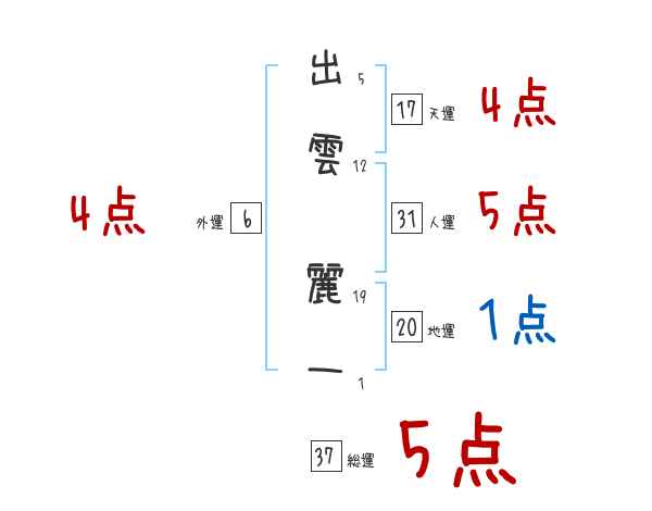 出雲麗一さんの画数の鑑定結果