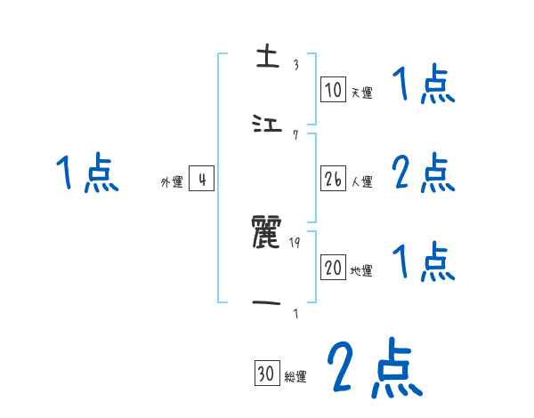 土江麗一さんの画数の鑑定結果