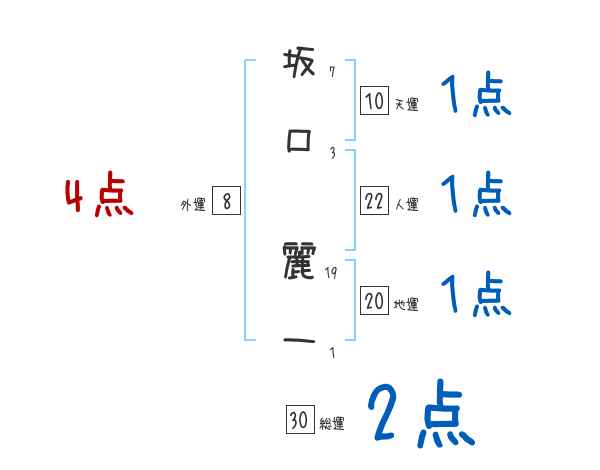 坂口麗一さんの画数の鑑定結果