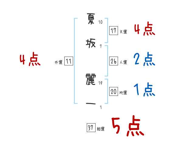 夏坂麗一さんの画数の鑑定結果