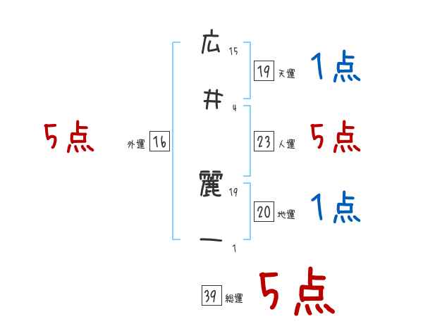 広井麗一さんの画数の鑑定結果