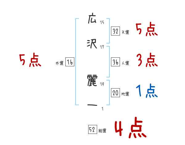 広沢麗一さんの画数の鑑定結果