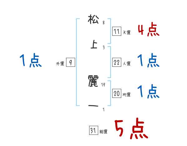 松上麗一さんの画数の鑑定結果