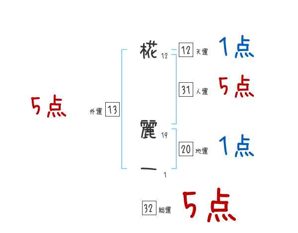 総運![]() | 椛麗一さんの総運は32画の5つ星!柔軟性があり成功する。チャンスが多く金運が良い。 あなたの人生を表す1番重要な運勢です。生涯を通じて影響する総合運となり、主に50歳以降の晩年期に影響を及ぼします。 |