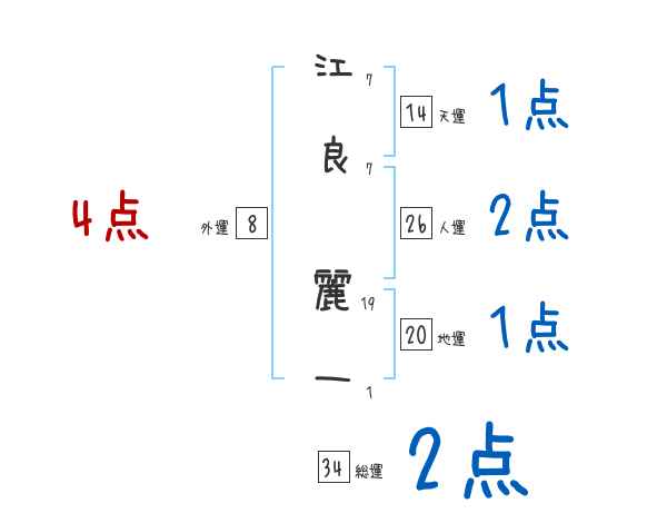 江良麗一さんの画数の鑑定結果