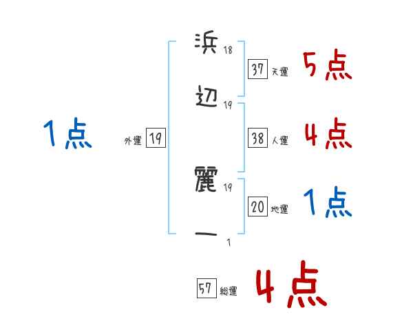 浜辺麗一さんの画数の鑑定結果