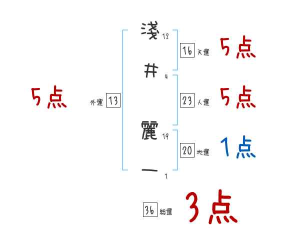 総運![]() | 淺井麗一さんの総運は36画の3つ星!先見性が豊かです。多少神経質で苦労することも。 あなたの人生を表す1番重要な運勢です。生涯を通じて影響する総合運となり、主に50歳以降の晩年期に影響を及ぼします。 |