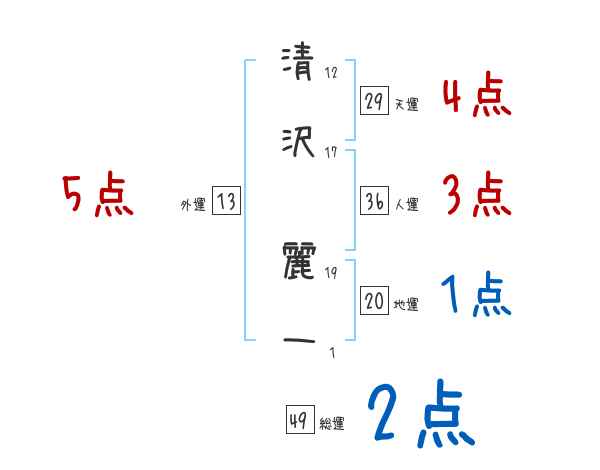 清沢麗一さんの画数の鑑定結果
