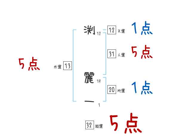 総運![]() | 渕麗一さんの総運は32画の5つ星!柔軟性があり成功する。チャンスが多く金運が良い。 あなたの人生を表す1番重要な運勢です。生涯を通じて影響する総合運となり、主に50歳以降の晩年期に影響を及ぼします。 |