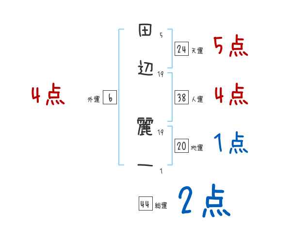 田辺麗一さんの画数の鑑定結果