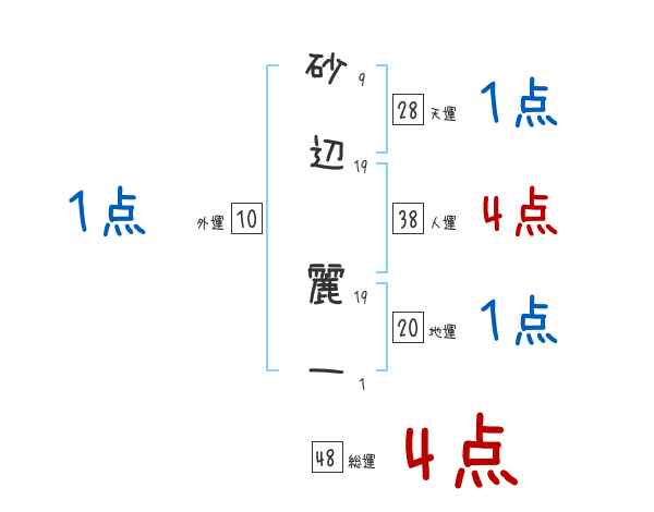 砂辺麗一さんの画数の鑑定結果