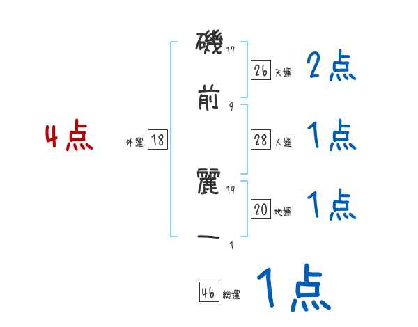 磯前麗一さんの画数の鑑定結果