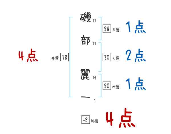 外運![]() | 磯部麗一さんの外運は18画の4つ星!情熱的で剛気。忍耐力があり信頼される。 生活面を象徴する運勢です。外部から受ける影響力を表し、結婚運、家庭運や職場、環境への順応性を表します。 |