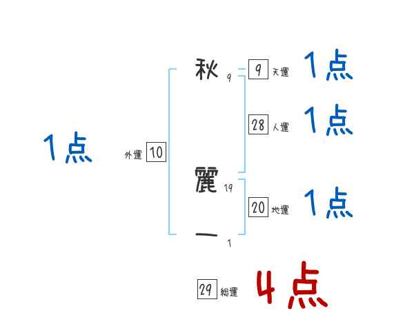 秋麗一さんの画数の鑑定結果