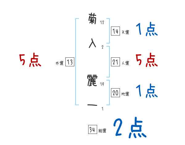 菊入麗一さんの画数の鑑定結果