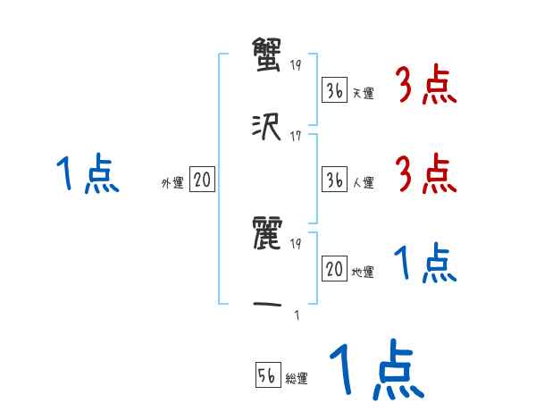蟹沢麗一さんの画数の鑑定結果
