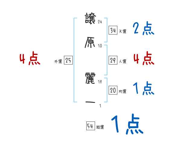 譲原麗一さんの画数の鑑定結果