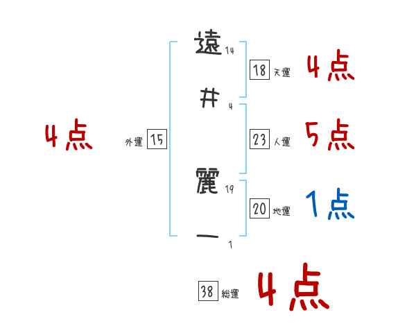 遠井麗一さんの画数の鑑定結果
