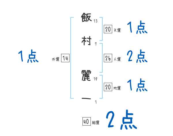 飯村麗一さんの画数の鑑定結果