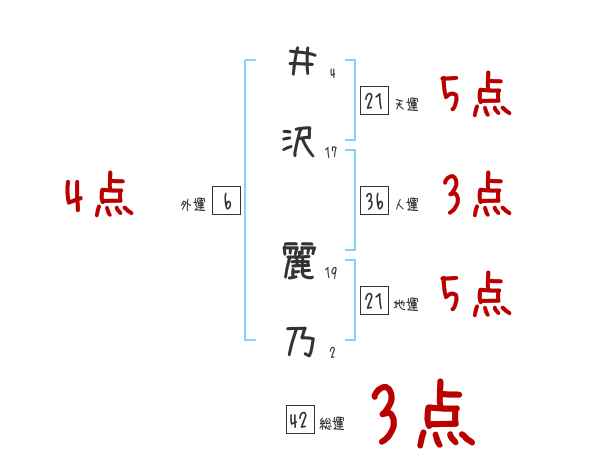 井沢麗乃さんの画数の鑑定結果