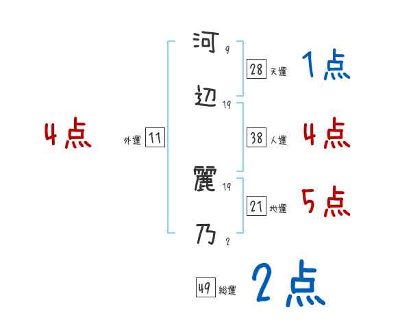 河辺麗乃さんの画数の鑑定結果