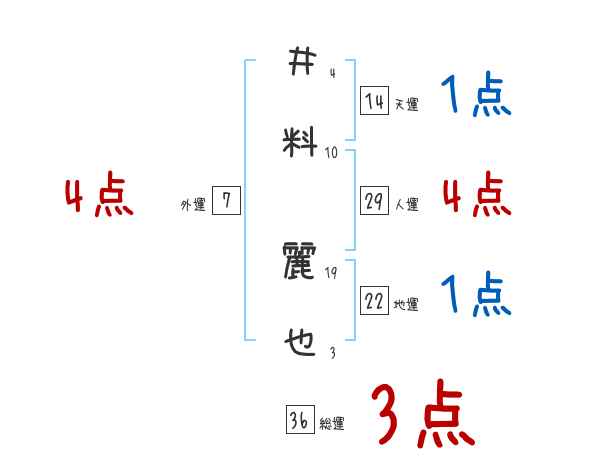 総運![]() | 井料麗也さんの総運は36画の3つ星!先見性が豊かです。多少神経質で苦労することも。 あなたの人生を表す1番重要な運勢です。生涯を通じて影響する総合運となり、主に50歳以降の晩年期に影響を及ぼします。 |