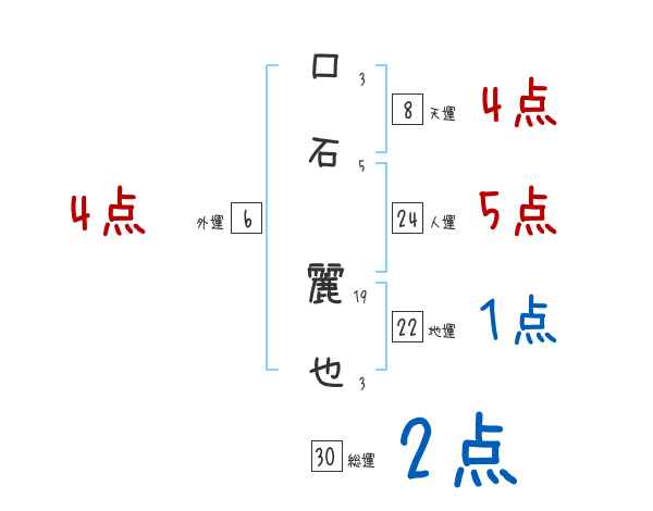 天運![]() | 口石麗也さんの天運は8画の4つ星!勤勉家。根気強く努力し成功する。忍耐力がある。 家系が持つ宿命的な運勢を表します。祖先から受け継いだ苗字ですので自分の力が及びません。家柄を象徴します。 |