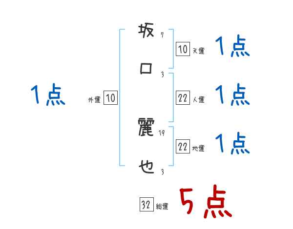 総運![]() | 坂口麗也さんの総運は32画の5つ星!柔軟性があり成功する。チャンスが多く金運が良い。 あなたの人生を表す1番重要な運勢です。生涯を通じて影響する総合運となり、主に50歳以降の晩年期に影響を及ぼします。 |