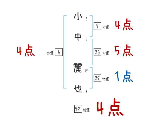 小中麗也さんの画数の鑑定結果