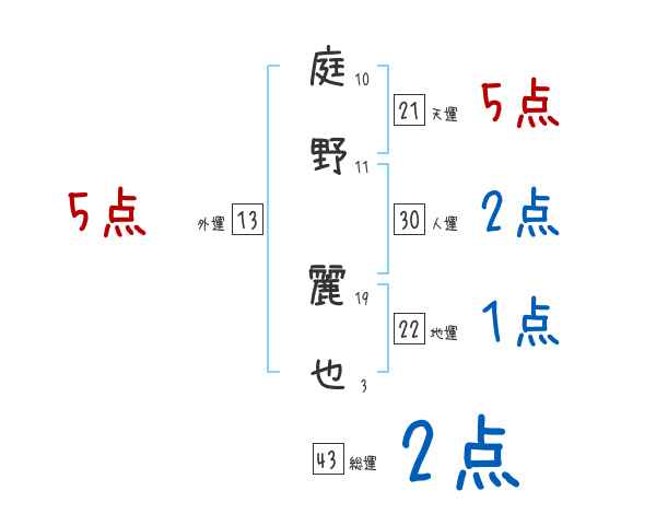 庭野麗也さんの画数の鑑定結果