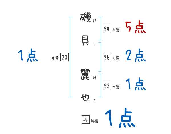 磯貝麗也さんの画数の鑑定結果