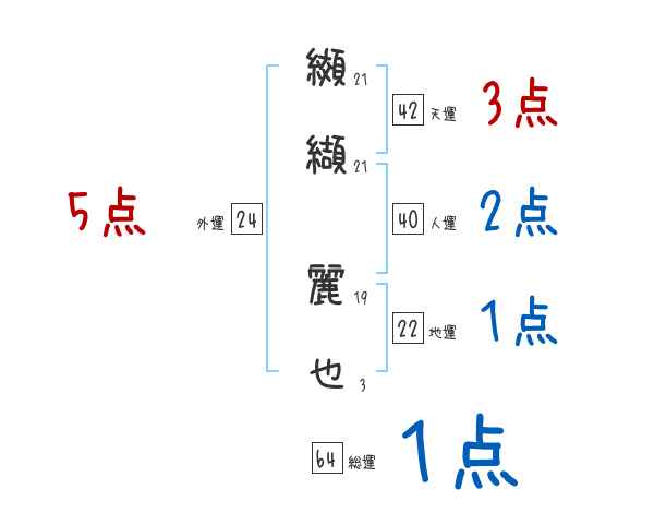 外運![]() | 纐纈麗也さんの外運は24画の5つ星!家庭運が良く順調な人生。金運にも恵まれる。 生活面を象徴する運勢です。外部から受ける影響力を表し、結婚運、家庭運や職場、環境への順応性を表します。 |