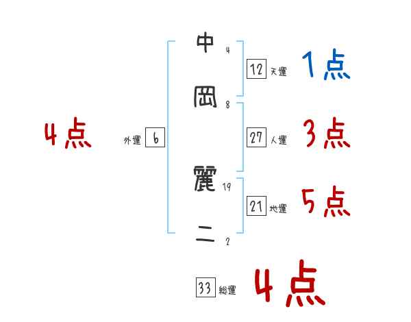 中岡麗二さんの画数の鑑定結果
